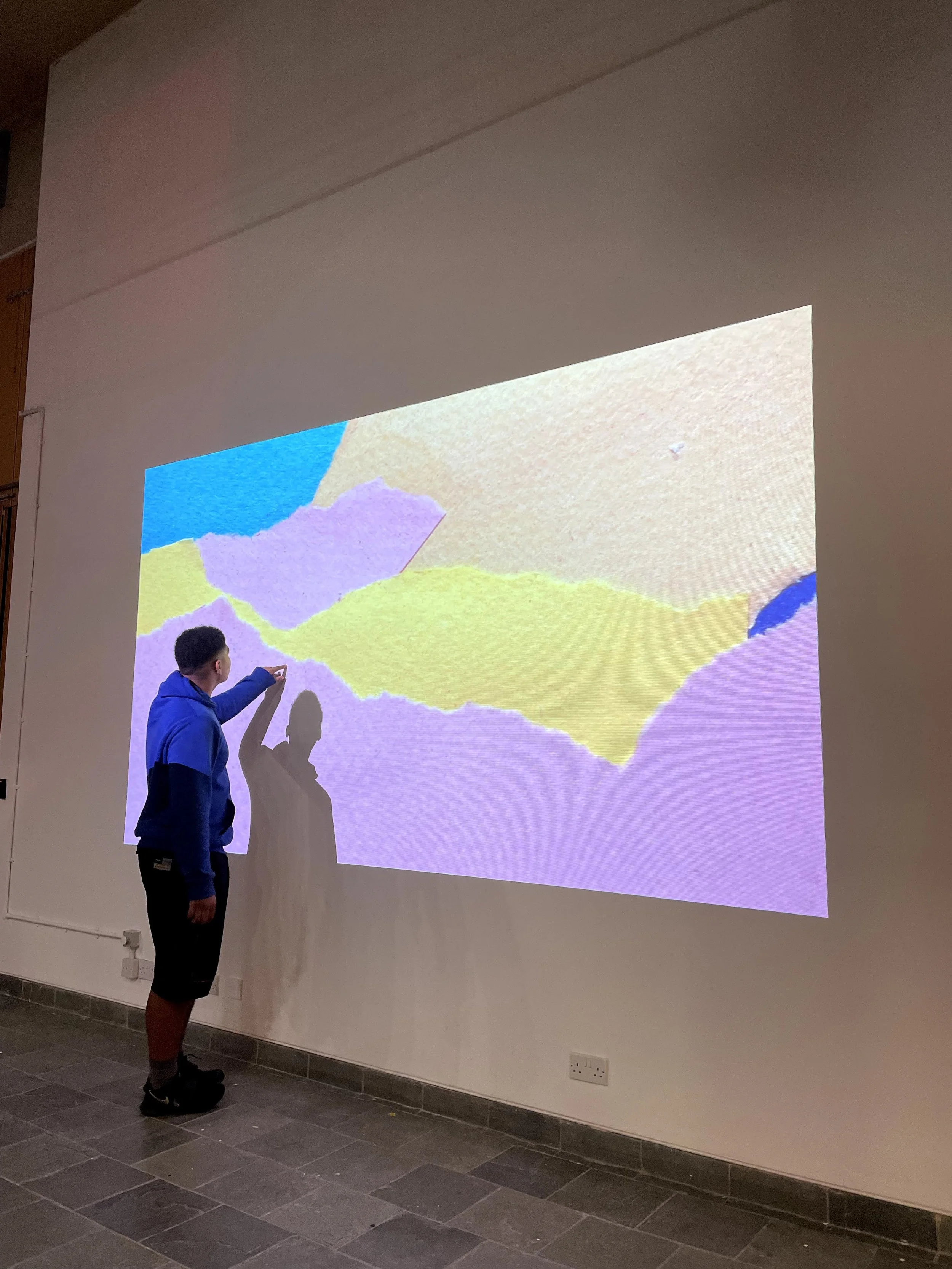 In the workshops, we experimented with different collage techniques and diffused coloured pigments in water. By panning over the work with a macro lens we created a film that transforms these small compositions into imaginary worlds. The young people worked with sound healer; Muna Mcadie to create an ambient and etheral soundscape for their film (featured above). Together, they experimented with contact microphones and Tibetan singing bowls, that produce the rich and deep tones.